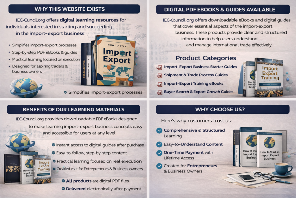 iec-coderegistration.org is created to simplify the import–export business for individuals and small businesses who want practical, step-by-step guidance in one place. Many aspiring traders struggle to understand how to start, manage shipments, find buyers, and execute international trade processes correctly. Our platform bridges this gap by offering structured digital learning resources that explain complex topics in a simple and actionable manner.
